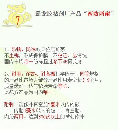 那接下來肯定會(huì)有朋友要問,那加進(jìn)去輪胎里面不會(huì)腐蝕輪胎嘛?這個(gè)嘉寶龍還真就告訴您-------不會(huì)!---------但是,您要這個(gè)自補(bǔ)液的品牌可真的要選對(duì)哈,市場(chǎng)上出現(xiàn)了太多的魚龍混雜的補(bǔ)胎液,含金量不高,不僅擾亂市場(chǎng),更重要的是,對(duì)您的愛車造成傷害,所以首選還是------------嘉寶龍自補(bǔ)液!因?yàn)?/font>------