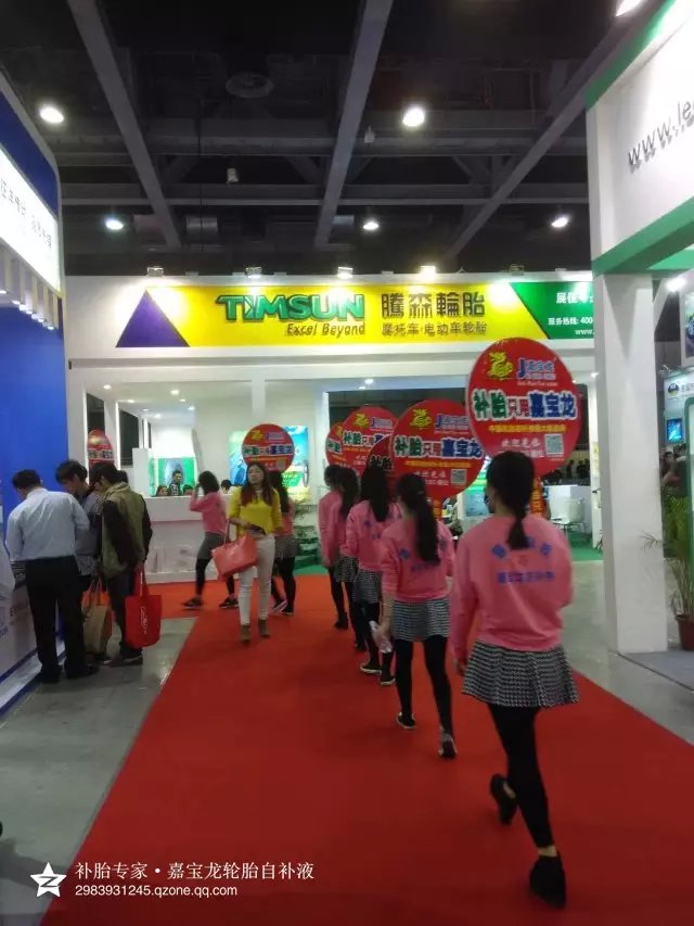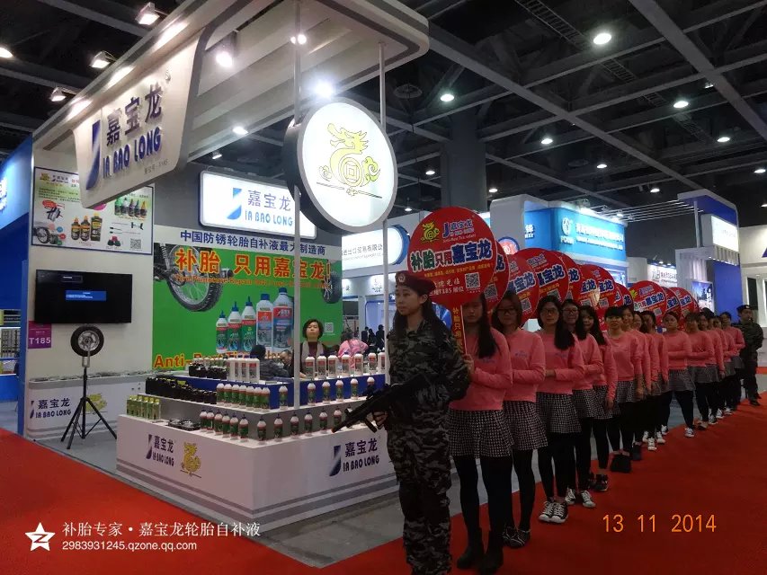 嘉寶龍真空胎自補(bǔ)液和飛虎隊(duì)強(qiáng)效輪胎自補(bǔ)劑的宣傳團(tuán)隊(duì)游走在會場的每一個(gè)角落,讓更多的人知道了霸龍公司,知道了嘉寶龍內(nèi)外胎兩用自補(bǔ)液,知道飛虎隊(duì)強(qiáng)效輪胎補(bǔ)胎液,我們的宣傳語就是:補(bǔ)胎只用嘉寶龍! 補(bǔ)胎就用飛虎隊(duì)!