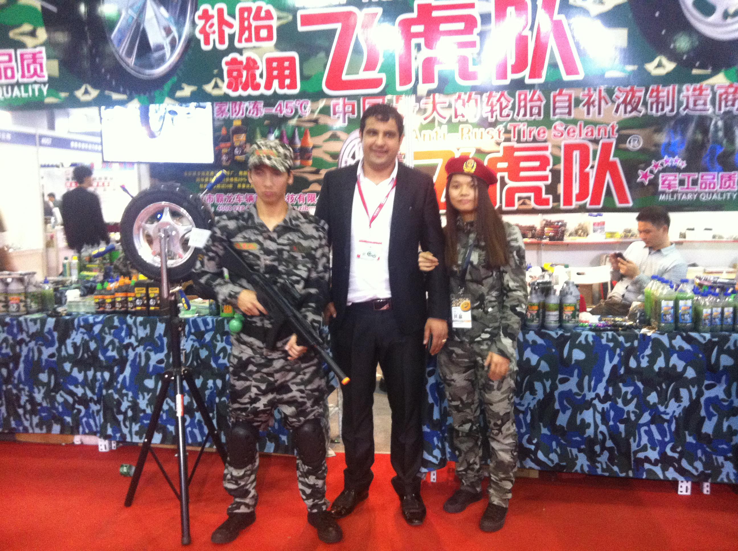 真空胎自補液飛虎隊的俊男靚女和外國經銷商合影